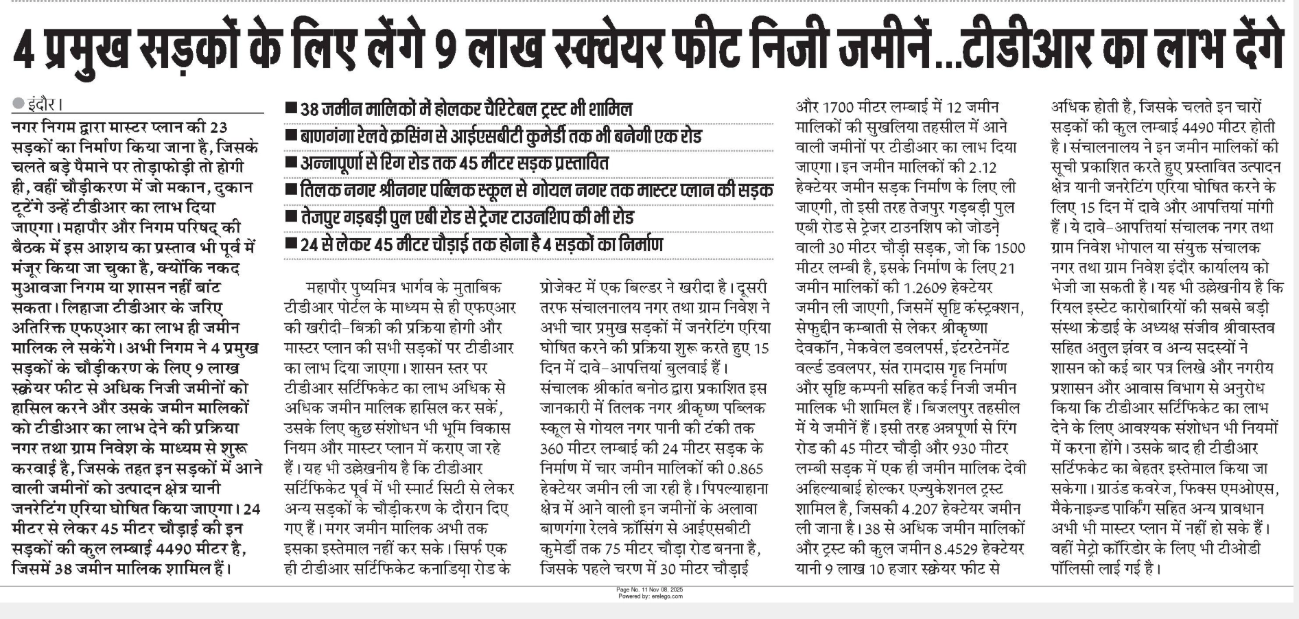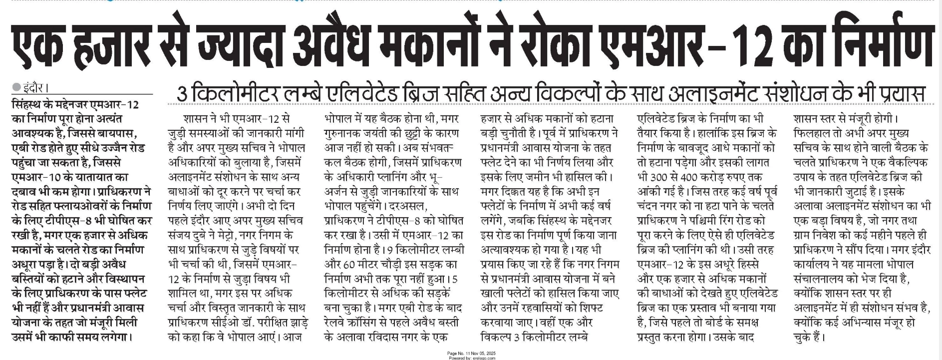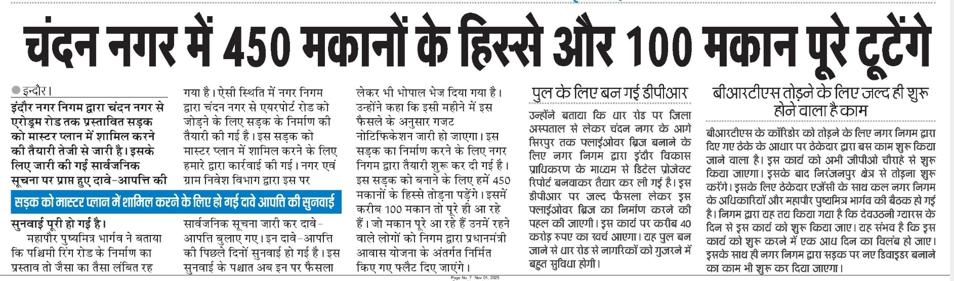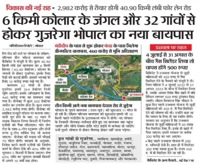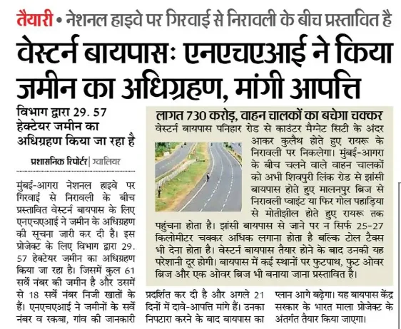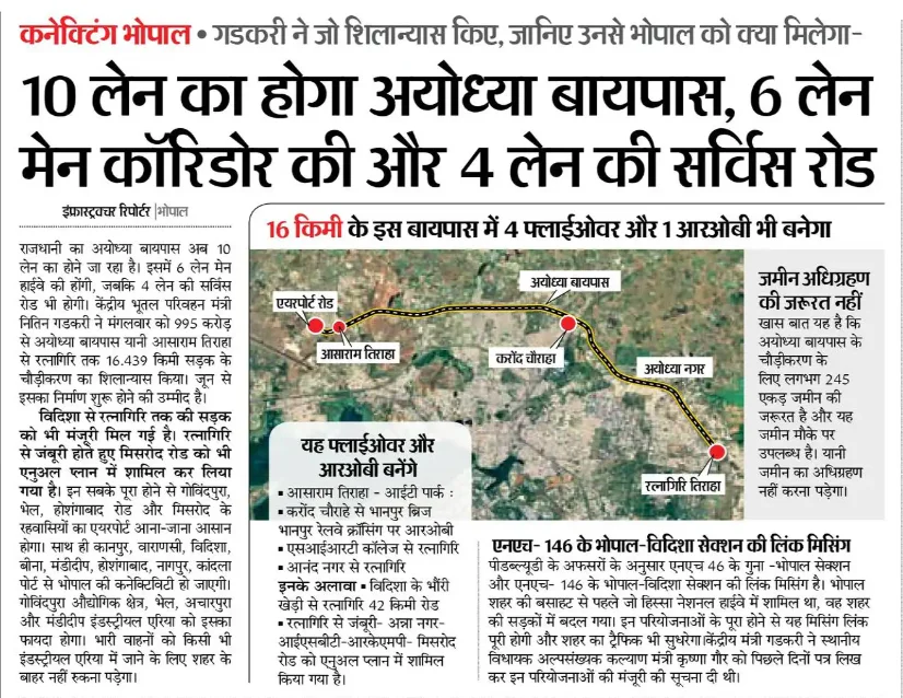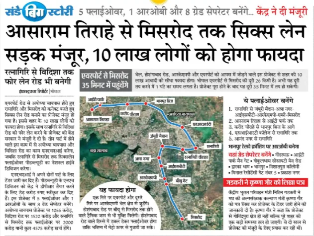 Six lane road approved from Asaram Tirahe to Misrod, 10...