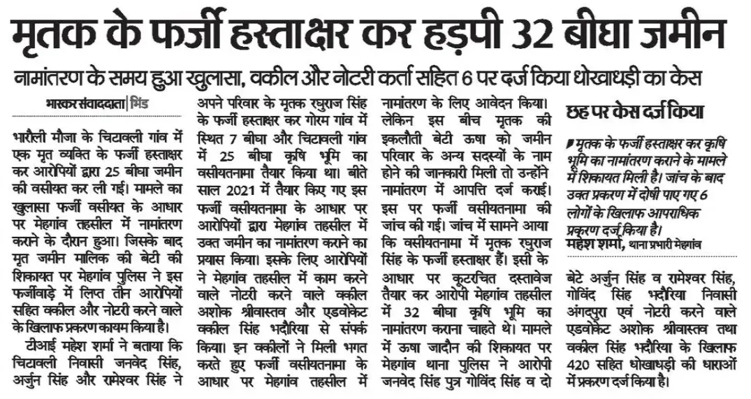 - Public Notices – Property disputes, Sale, mortgage, Power of Attorney, nominations, and possession