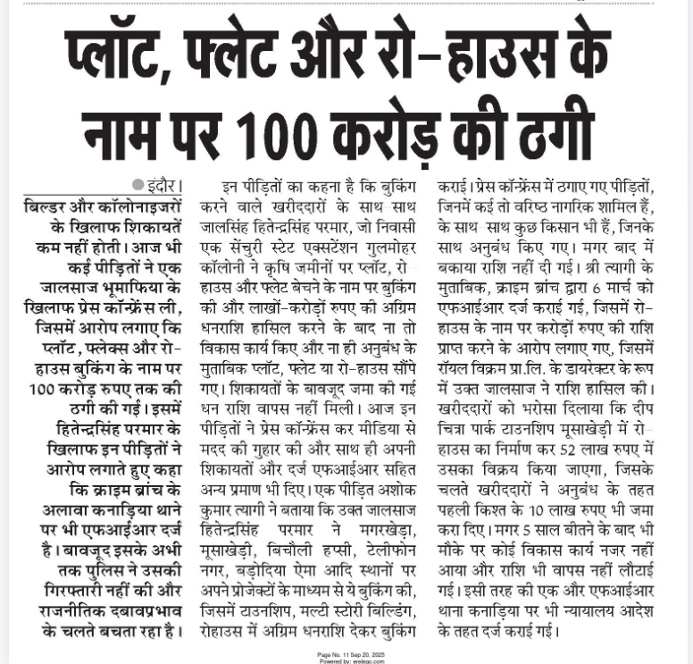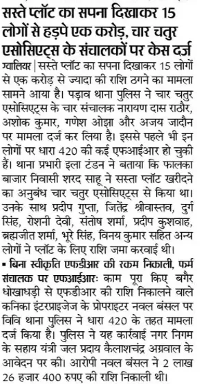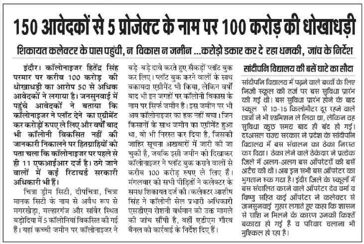 Fraud of 100 Crore in Name of Plots, Flats and...