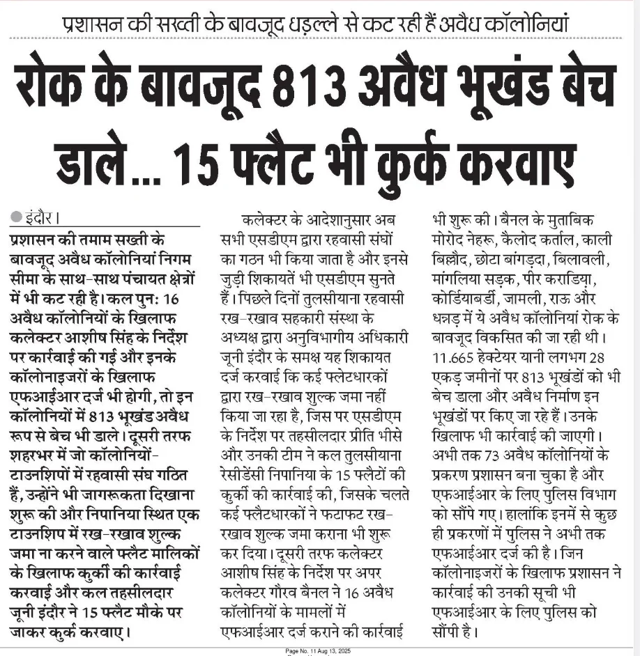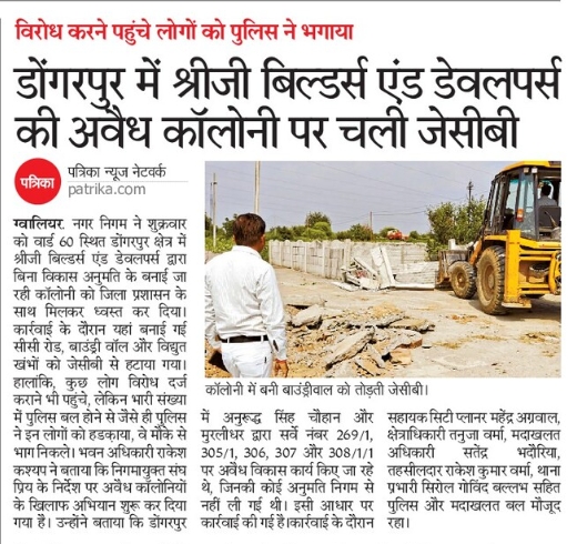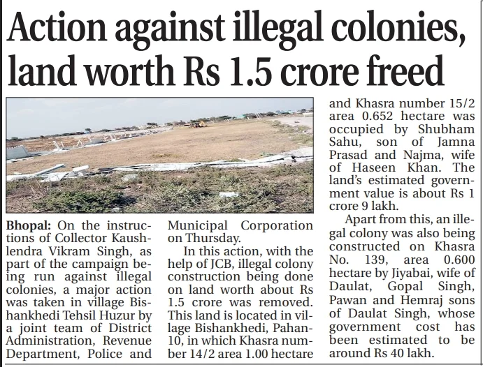 Action against illegal colonies, land worth Rs. 1.5 Crore freed