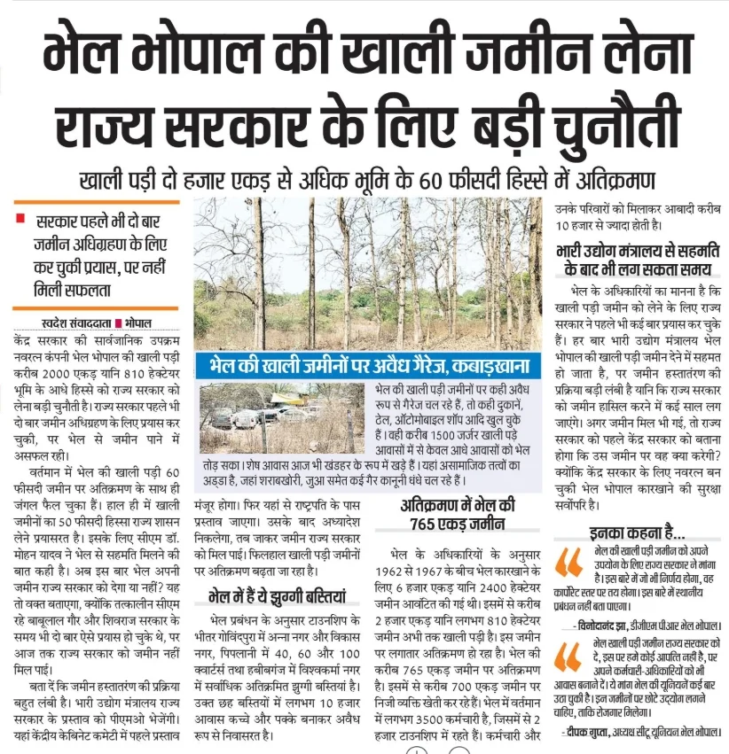 Acquiring vacant land of BHEL Bhopal is a major challenge...